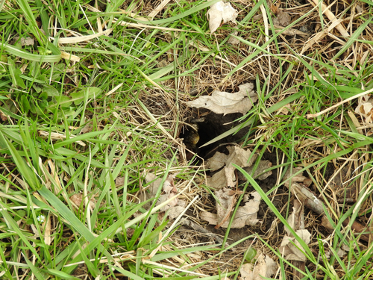(Photo of snake hole in yard)